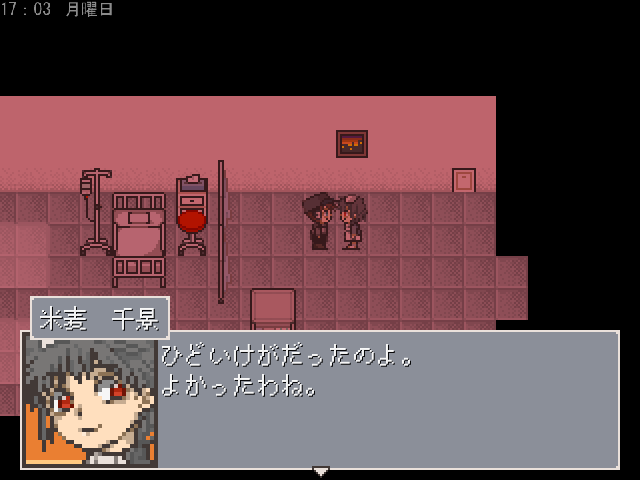 私の予想だとひと月くらいで我慢できずに更新しだすかなと思っていたのですが・・・ サイト訂正のお知らせはまあノーカンとして、意外に持ちました。 で、今回はなんの更新かというと、 また創作ゲーのケツ叩きを行うことにしたので・・・。 「記」のときはそこそこできた状態でこういう記事を書いていたのですが、 マジでセリフとかも全然入れてない状態です。 なんでって今イチから作り直してるからです。マジです。 仮タイトルは「DAMAGE」。 でもほぼ決定ですね。タイトル画面作っちゃったので(なんで?)。 主人公の「井鳥 健」は、収容された「かわりもの」(仮称)。 「かわりもの」は奇妙な姿に化けることが可能な人間で、 非常に強い力を持っているため、 見つかると「収容人」に隔離されてしまうのです。 収容後、独房で過ごしていた井鳥は、 看守から突如「収容人」の仕事を依頼されます。 異を唱える井鳥。 「あと1週間だろ?ほっといてやれよ。」 世界は残り1週間で終わりを迎えることが決まっています。 というあらすじの予定。収容人、引き受けます。 1週間以内に「かわりもの」をどれだけ捕まえられるかがポイントです。 MAX50名で予定してますが全然動かしてないのでどうなるかわかりません。 「かわりもの」はその人物によって力を発揮できる時間帯が違います。 グラビティもそんな感じだったけどそういうことです。 (ちなみにグラビティの時計システムをちょっといじって、 日差しの具合がもう少し細かく変わるようになりました。) 属性としてタイヨー・ミカヅキ・ツキに分かれているので、 その時間を避けたり、逆にその時間に合わせて本性を暴いたりするなどして、 効率よく捕まえましょう。 また、前回宣言した通り、既出の創作キャラクターがほとんどです。 稲餅さんは記のモブとかでねじ込んでおけば皆勤賞だったなと思います。 もはや看板娘。 あとしれっと井戸北さん問題を解決してしまいました。 時間が解決してくれました。懐かしい。 グラビティにいたメンツについては名前見てアレッ?となるかもですが、 元々キャラクターを作ったときに一緒に決めたモノです。 結局本編では使わなかったので、ここで供養。 素材関係については兄弟顔グラをここにきて一新しました。 兄弟顔グラであることに変わりはありません(重要)。 マップチップやキャラチップなんかもベースは使いまわしですが、 全体的にいじり直しています。 なんだかんだで一番行き詰まってるのが作曲・・・。 幅広いジャンルを書ける人の凄さを実感している・・・。 年明けから地道にやっていたのをほとんど没にしたので、 途方に暮れていたのですが・・・ いろいろ新しいことも試してみたいので、ゆっくり進めていきます。 何卒。 [ <<前のページ | ] |