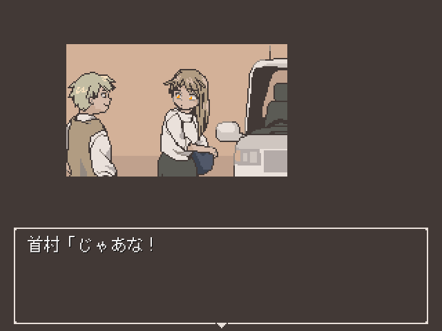 だいたい上げてからが(修正の)本番になってしまっているので、 これからもセリフ等ちょこちょこ直していくと思いますが・・・。 とりあえず創作でのゲーム案ストックはすべて消化しました。 作ったばっかりなんで、再プレイはもうちょっと時間あけてからにしておきます。 プレイ時間は30分弱で見込んでますが、製作期間は停滞期を含めるとおよそ1年半。 まあ停滞期の方が長いんですけど、ノロノロ進めていたのでこのような結果に。 それでも完成まで行ったのでまあ良しとしましょう。してください(懇願)。 ADVは、ファミコンでガーッとやってた時期があって、 その時からずっと作りたかったんですけど、 ウディタでRPG作るのもほぼわからないような状態だったので、 なかなか実現に至りませんでした。 TELesidenceも構想はADVでしたね。 いや、結果的にそれぞれ今の形の方でよかったなとは思うんですが。 そして特に意識していたわけではないんですが、 主人公が人生の行き来で使う旅券システム、 やっぱ某三部作のセルフの影響はあるよなと(笑)必須でないあたりも。 辞世の句はありませんが、ちょこちょこ試してみていただければと思います。 不具合等ございましたらまたご一報いただけますと幸いです。 TELesidenceの見直しも近々しようかなと思ってます。 うお~~~!!!やったぞ~~~~!!!